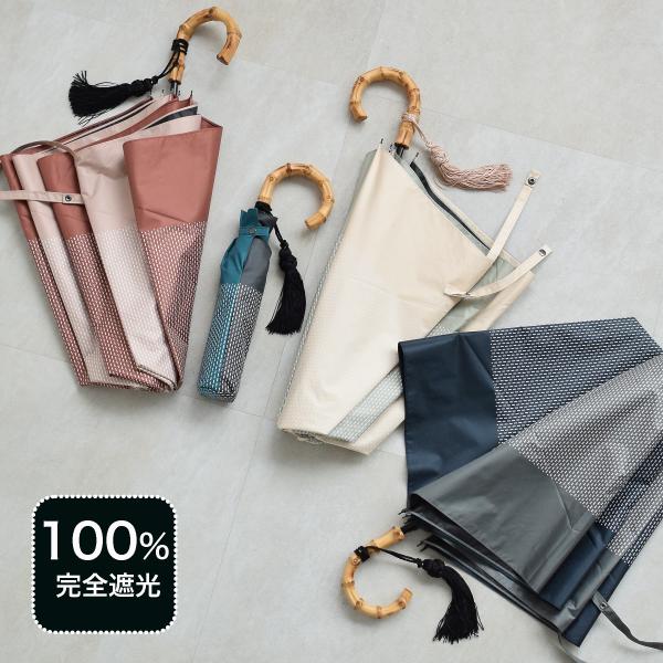 日傘 完全遮光 長傘 小さめ 一級遮光 軽量 晴雨兼用 遮熱 シャンブレー スライドショート 親骨47cm バイカラー バンブー 竹 母の日 utatane
