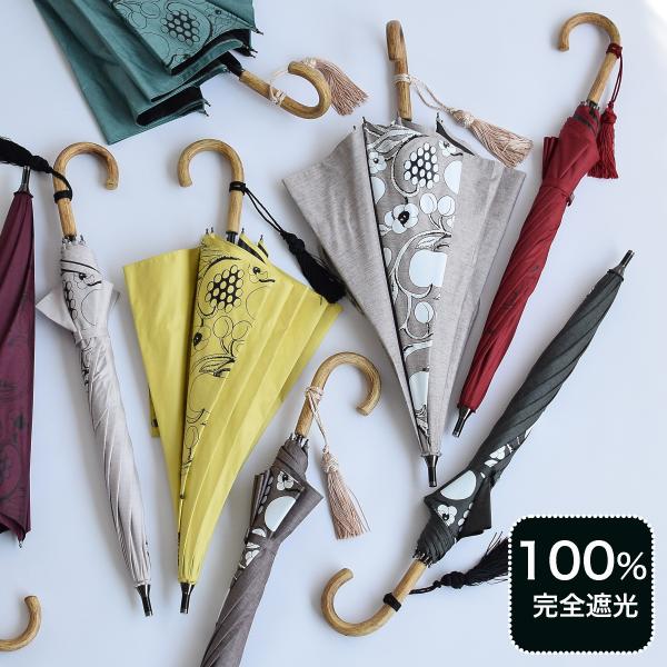 日傘 完全遮光 長傘 小さめ utatane×Kuovi クオヴィ 親骨47cm スライドショート 北欧色シャンブレー/果樹園 オーチャード ORCHARD 1パネル ウッド
