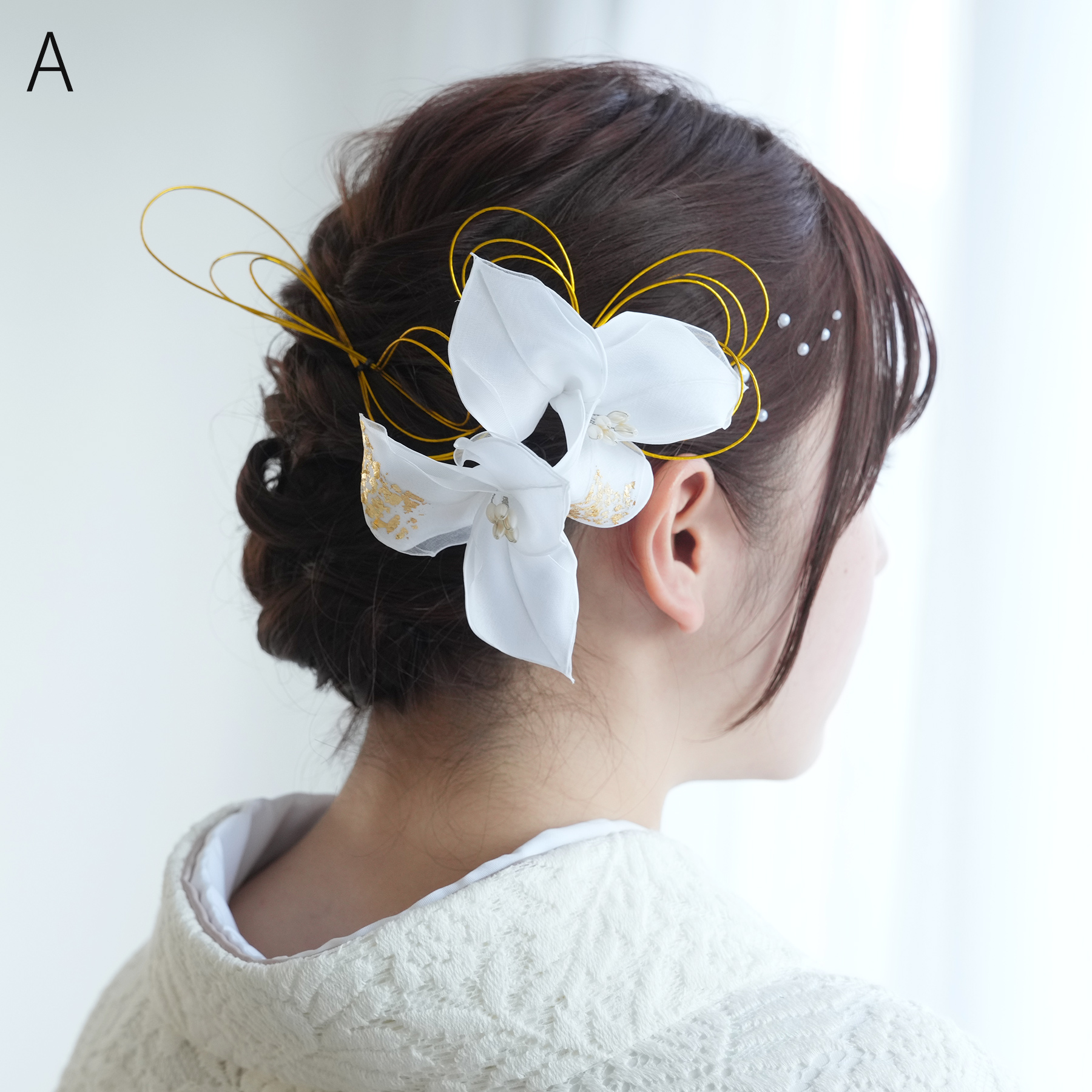 髪飾り 花 成人式 百合 ゆり Uピン2本セット 日本製 ヘアアクセサリー 白 銀 シルバー 金 ゴールド 浴衣 振袖 卒業式 袴 和装 洋服にも 結婚式 小さめ