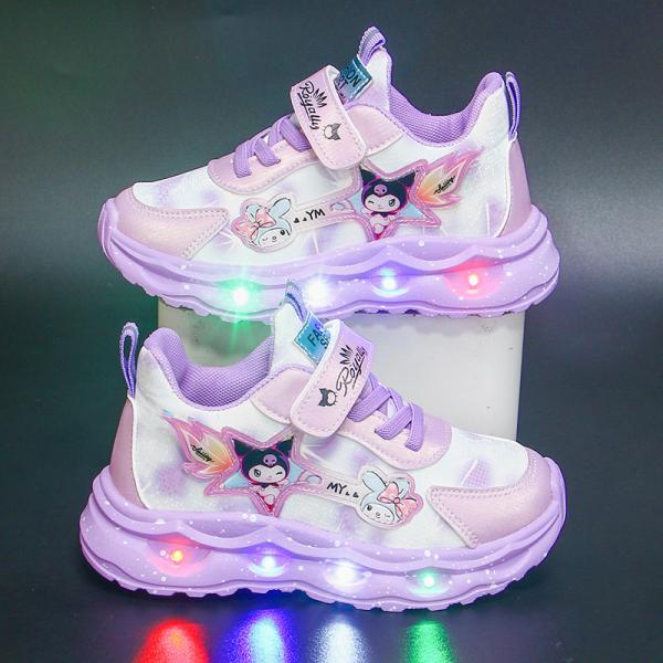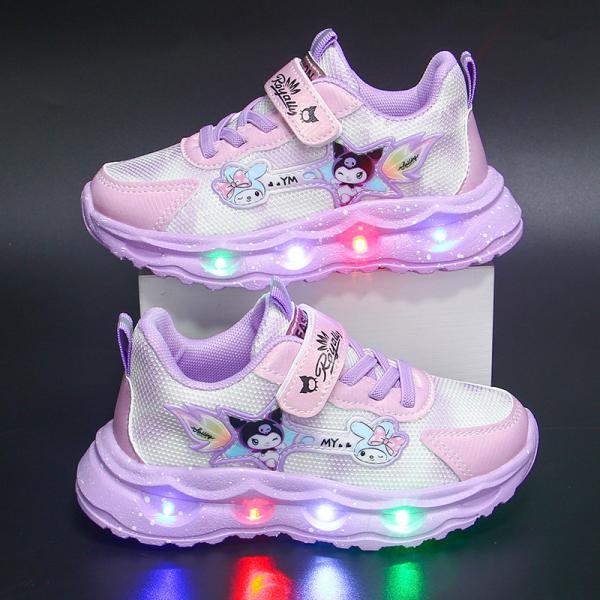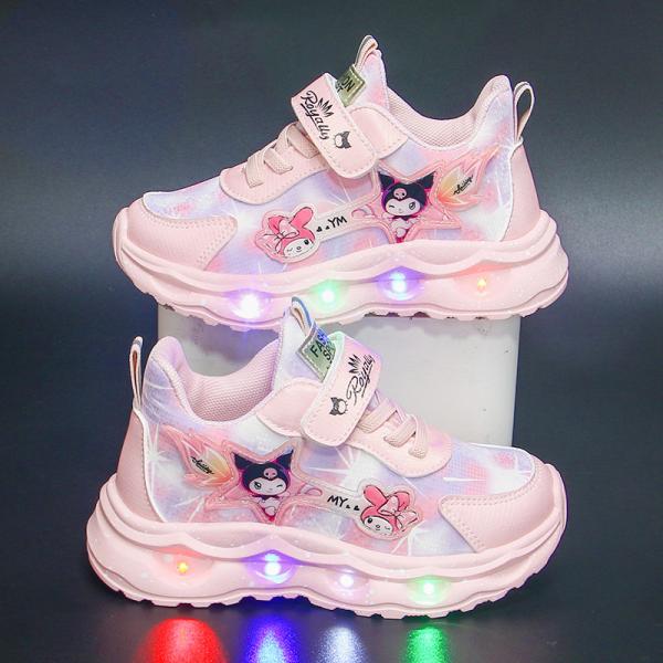 光る靴 クロミ風 運動靴 女の子 子供 キッズ 春 秋 防水 通気性 軽量 魔法少女風 デザイン 滑り止め 魔術テープ 学生 ランニングシューズ 14cm-20cm