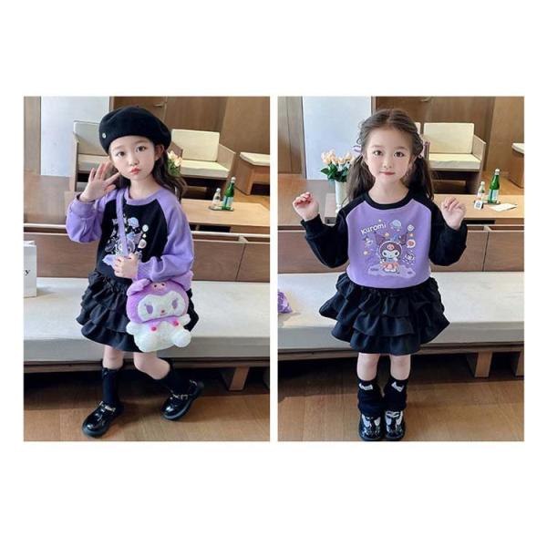 【クロミデザインの2点セット】 人気キャラクター「クロミ」をモチーフにしたキュートなデザイン!ロングスリーブのトップスとプリーツスカートの2点セットで、春秋のファッションを華やかに彩ります。