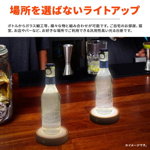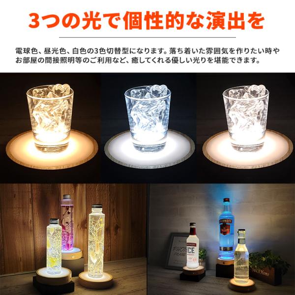 光る 木製 台座 円型 丸型 調光 パターン点灯 イルミネーション スタンド 照明 ライト コースター 光る台座 木 装飾 間接照明 USB 充電式 屋内用