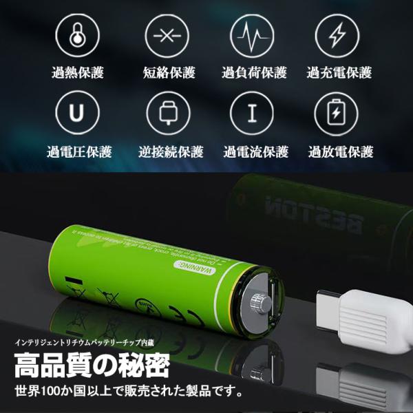 リチウムイオン充電池 単3形 充電池 Type-C 1.5v 単3 バッテリー バッテリー充電器 急速充電 USB 充電 保護機能付き<br>