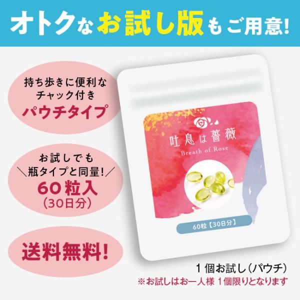 【お一人様1袋限り】 日本直販オリジナル 飲むフレグランス 吐息は薔薇 1個お試し(パウチ) 口臭 体臭 息 ニオイ ケア サプリ サプリメント ローズ 日本直販