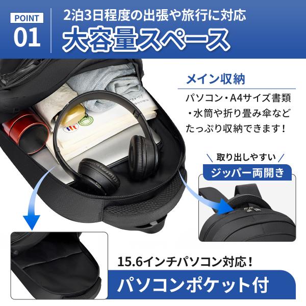 商品名:ビジネスリュック メンズ 大容量 通勤 リュクサック 軽量 A4 軽い 通学 旅行 おしゃれ 多機能 シンプル 撥水 防水 多ポケット 背面ポケット 2泊 USB