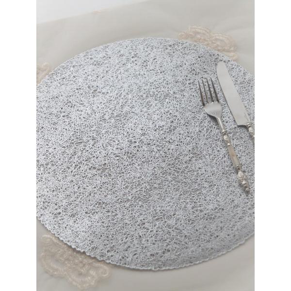 シルバーが美しいラウンドのランチョンマット。