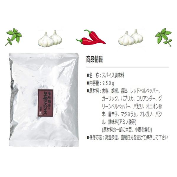 ■原材料:食塩、胡椒、醤油、レッドベルペッパー、ガーリック、パプリカ、コリアンダー、グリーンベルペッパー、パセリ、オニオン粉末、唐辛子、マジョラム、オレガノ、バジル、調味料(アミノ酸等)(原材料の一部に大豆、小麦を含む)