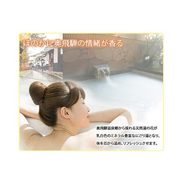岐阜県の奥飛騨温泉郷から採れる 天然湯の花 が、 乳白色 の ミネラル豊富 なにごり湯となり、体を芯から温めリフレッシュ。