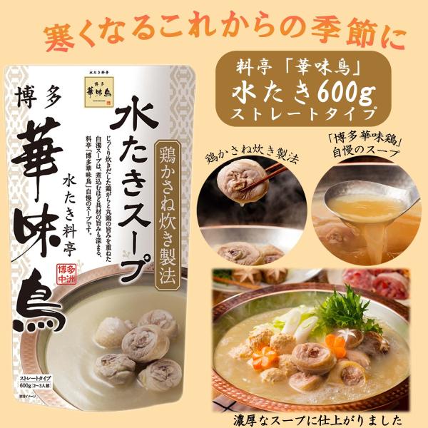 博多華味鳥 水炊きスープ 600g×3袋セット 水たき料亭 鍋の素 鍋スープ 丸鶏 鶏がら 白濁スープ 全国一律送料無料