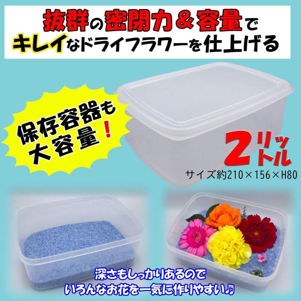 ドライフラワー用シリカゲル(乾燥剤)に、ドライフラワー作りに便利な専用容器2点がついたお得なセットです。