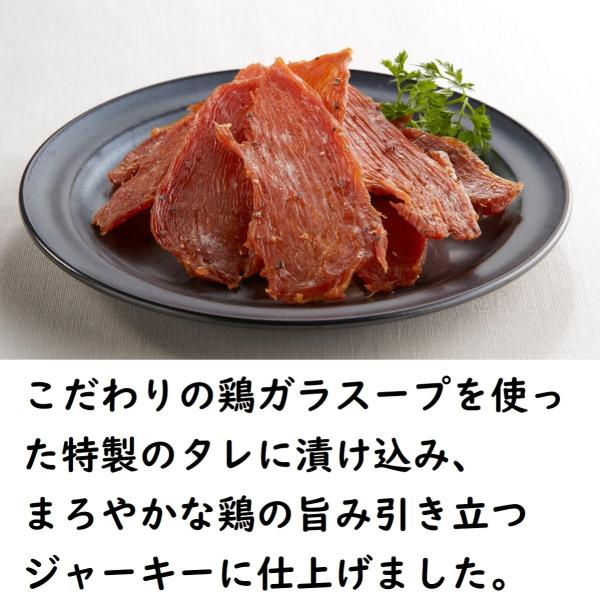 こだわりの鶏ガラスープを使った特製のタレに漬け込み、まろやかな鶏の旨み引き立つジャーキーに仕上げました。