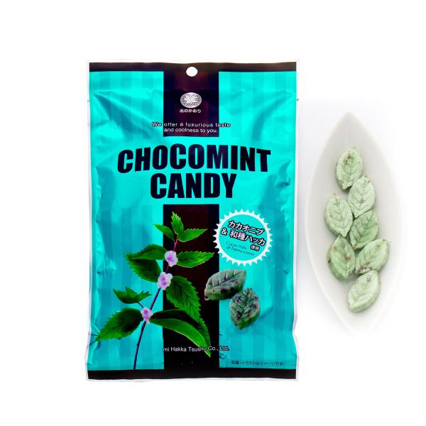 ハッカ本来の上品な風味を重視し、カカオニブ(チョコレートの原料であるカカオ豆を焙煎し、砕いたもの)を配合したチョコミントキャンディーです。