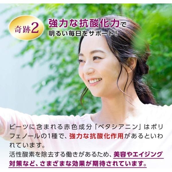 スーパーフードとして注目されている野菜「ビーツ」の栄養を手軽にとれるドリンクです。 「ビーツ」はヨーロッパやアメリカ、ロシアなど世界各国で日常的に食べられ、ポリフェノールのベタシアニンや硝酸イオン、カリウム、鉄、葉酸など豊富な栄養素が含まれています。 世界中で親しまれ、エイジング対策として、またスポーツ界でも注目されるこのスーパーフード「ビーツ」のドリンクを毎日の栄養補給にお役立てください。ビタミンCを加え飲みやすくしています。