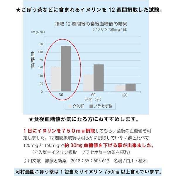 ごぼうに豊富に含まれるイヌリンには、食後の血糖値の上昇を抑える作用が報告されています。本品2.5g中にイヌリン750mgが含まれています。