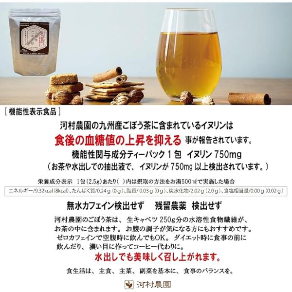 毎日の健康のサポートなどに「河村農園 九州産ごぼう茶 2.5g×60包 機能性表示食品」をお役立てください。