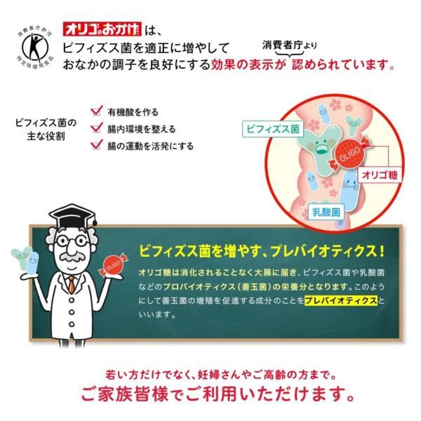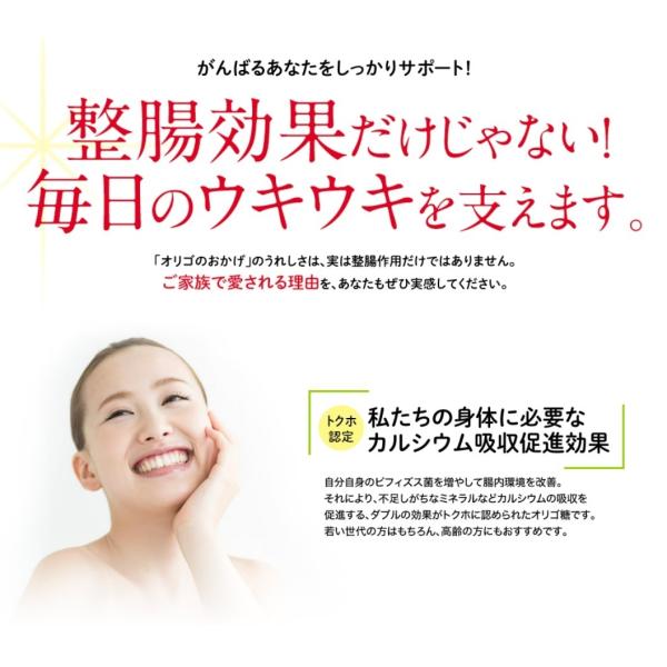 ●オリゴのおかげダブルサポートは、私たちの腸内に棲んでいるビフィズス菌を増やし日本人に不足しがちなカルシウムの吸収を促進します。