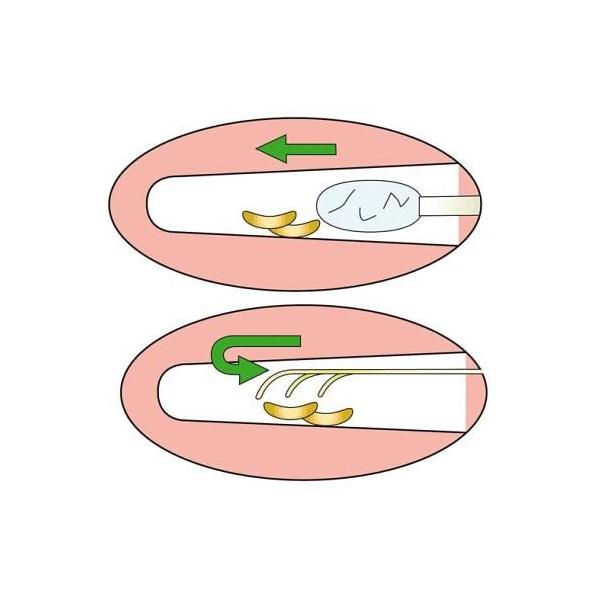 ●綿棒では耳あかを押し込んでしまいがちですが、サジ型の極細ワイヤが耳アカを飛び越え、さらに肌に程良く食い込むから、耳アカをはがしながらかき出します。