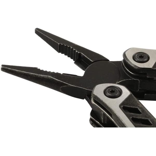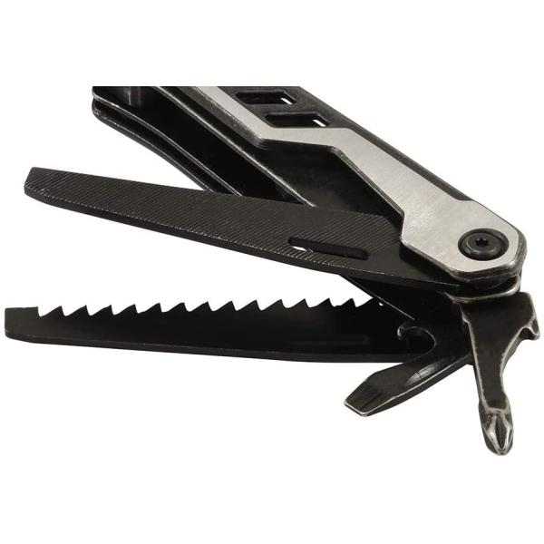 ペンチ、ワイヤーカッター、大型ナイフ、鋸刃ナイフ、小型ナイフ、ドライバー、ヤスリ、栓抜き、缶切りがコンパクトに収まっています。