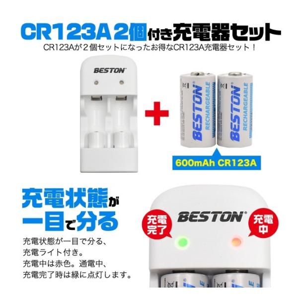 CR123A 充電器セット CR123A 充電池2個付き 600mAh USB充電器 リチウム電池 wma-023 _