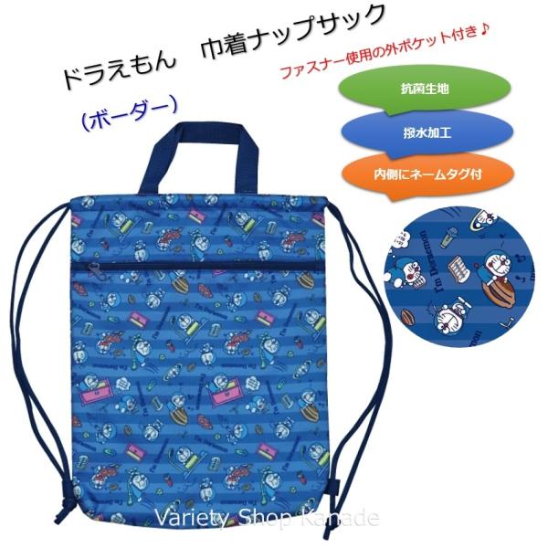 体操着袋 ドラえもん 巾着 ナップサック 持ち手付き 体操服袋 キッズ ボーダー ファスナー ポケット付き 小学校 入学 入園 通学 通園 お稽古 準備 お祝い