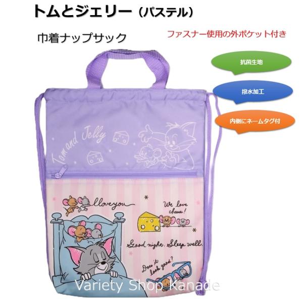 体操着袋 トムとジェリー 巾着 ナップサック 体操服袋 キッズ 持ち手付き ファスナー 小学校 入学 入園 通学 通園 お稽古 サブバッグ キャラクター 準備 お祝い