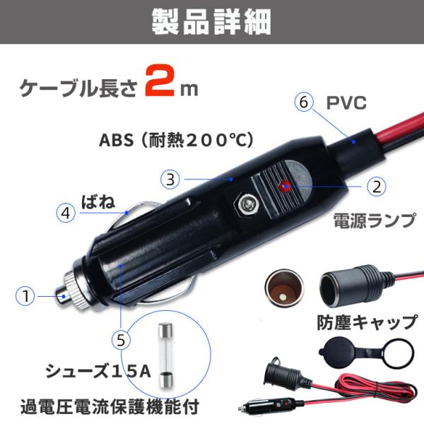 2m延長で車内の使いやすさUP!大電力15A対応で安心&便利