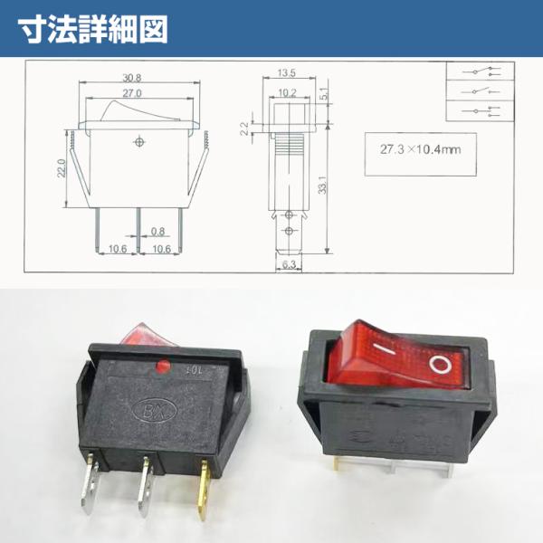 品名:ロッカースイッチ 3ピン 単極双投式 (kkdchky)
