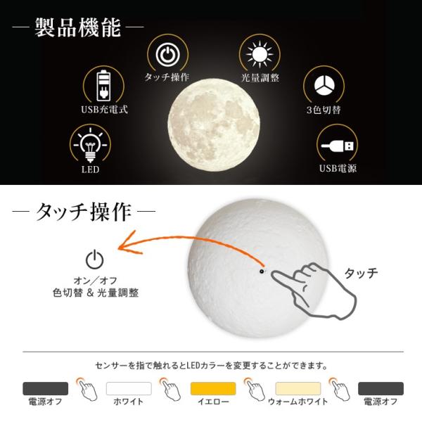 商品名:間接照明 インテリア ライト 月のランプ ルームライト おしゃれ あかり 卓上 LED 調光 充電 (直径15cm)