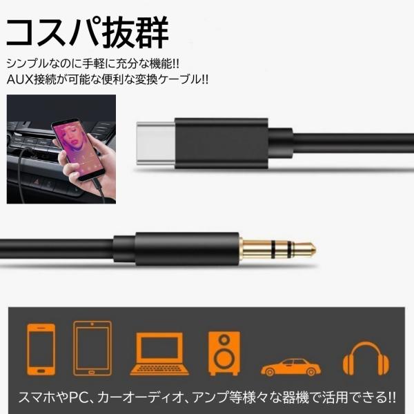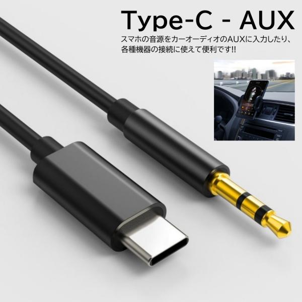 Type-c AUXケーブル 黒 1m ステレオミニプラグ カーオーディオ タイプC android 3極 3.5mm イヤホンジャック 変換 DAC内蔵 スマホ 音楽 再生 カーナビ