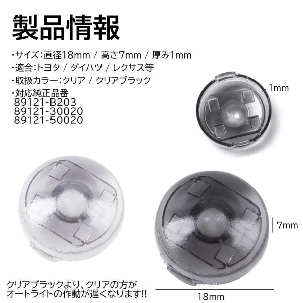 オートライト センサーカバー トヨタ ダイハツ 汎用 車 自動調光 直径 18mm 半透明 コンライトセンサー クリア クリアブラック レンズ カスタム パーツ