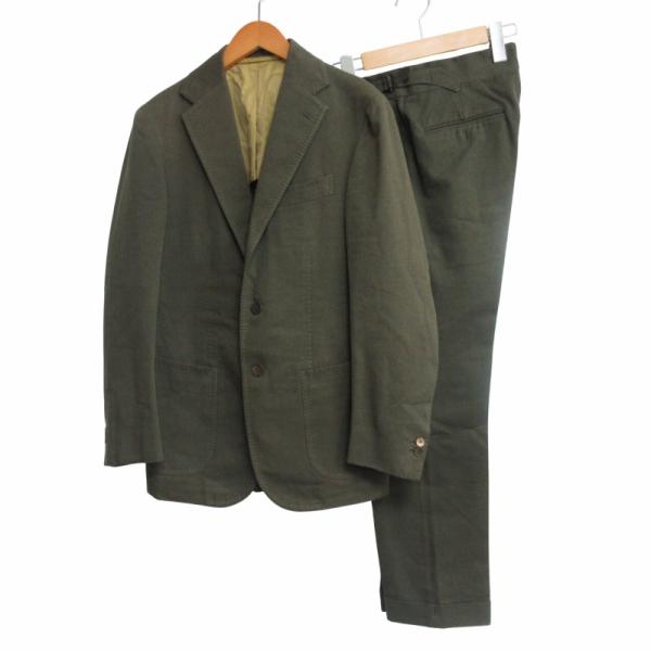 スティレラティーノ 最高級 AUVINCENZO スーツ セットアップ 段返り3B 本切羽 サイドベンツ コットンシルク カーキ サイズ44 IBO68