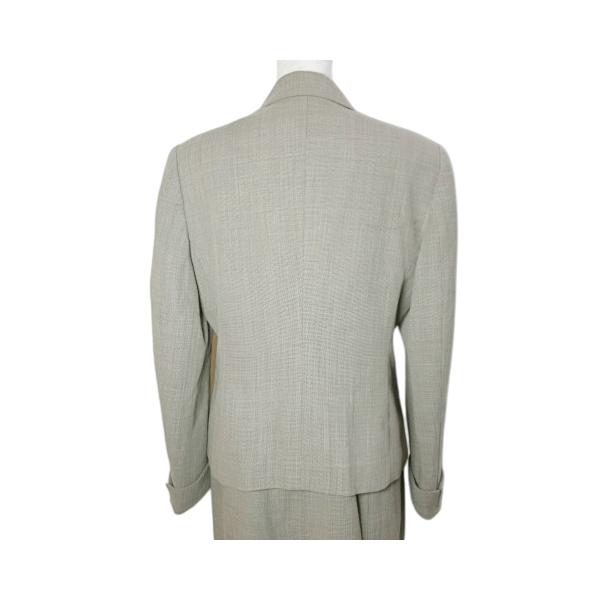 【状態】・ワンピースの裏地の背中、両脇にシミ、右胸元に1.5cm程度の薄いシミ、ベルトが欠損しており、右側のベルトループが切れています。 ・ジャケットの裏地の両脇にシミがございます。 ※全体的に中古品としての使用感とダメージがありますが、通常使用には支障のない商品です。 掲載写真や記載内容をご確認いただき、ご理解の上ご購入ください。