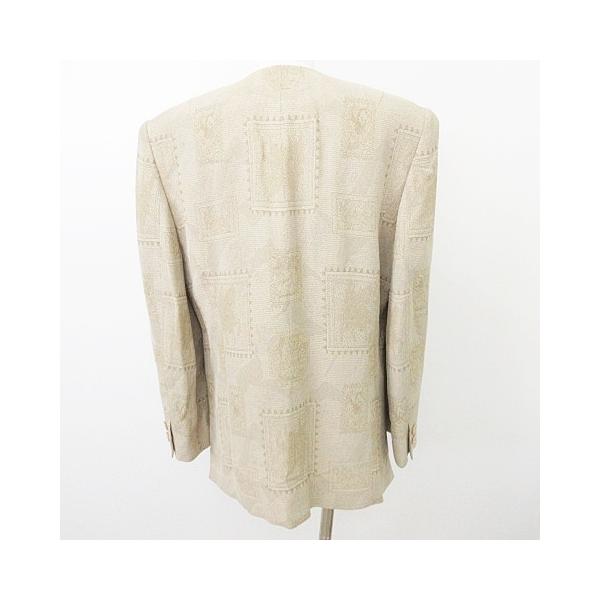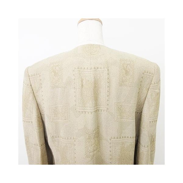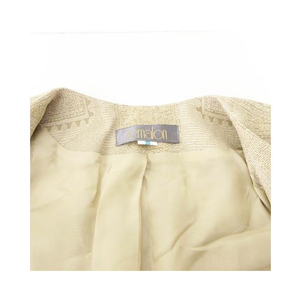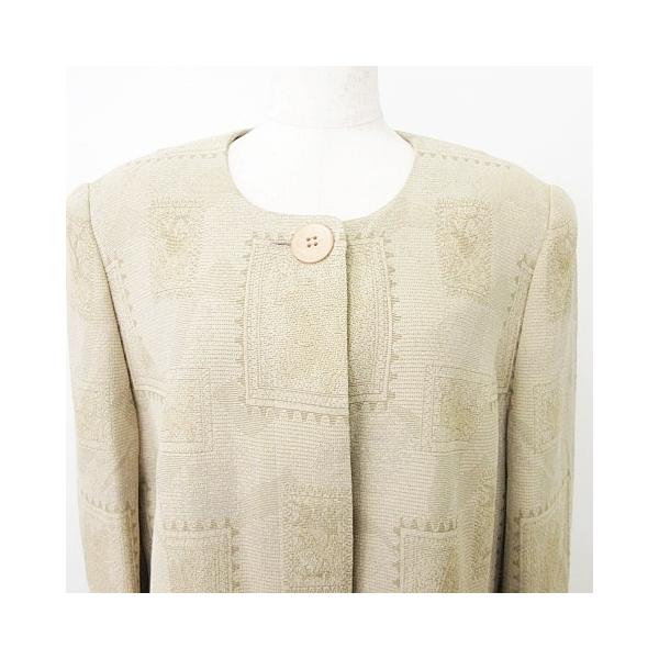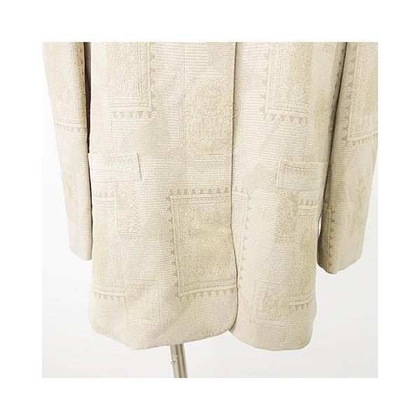 美品 remalon レマロン 総柄 ノーカラー ジャケット 羽織 薄手 ワンサイズ ベージュ ■GY99 レディース