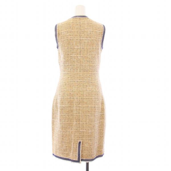 シャネル CHANEL 09P ツイード ノースリーブワンピース ひざ丈 チェック ココボタン ココマーク 36 ベージュ P34933V25182 /KH レディース