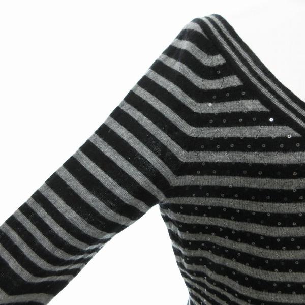 ヨーコドール YOKO D'OR ニット カットソー 長袖 ボーダー スパンコール 38 グレー 黒 /JS ■GY39 レディース