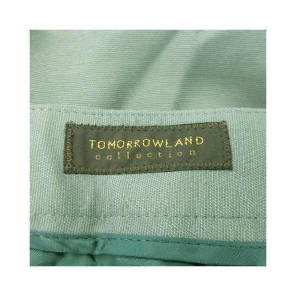 トゥモローランドコレクション ドレーピーストレッチ シガレットパンツ テーパード アンクル センタープレス ノータック 34 XS 緑