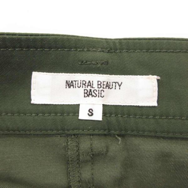 ナチュラルビューティーベーシック NATURAL BEAUTY BASIC 美品 フレアスカート S ひざ丈 ボタンフライ カーキ /AE レディース