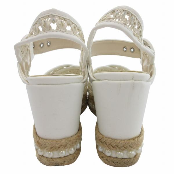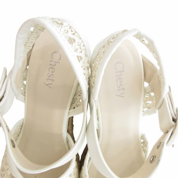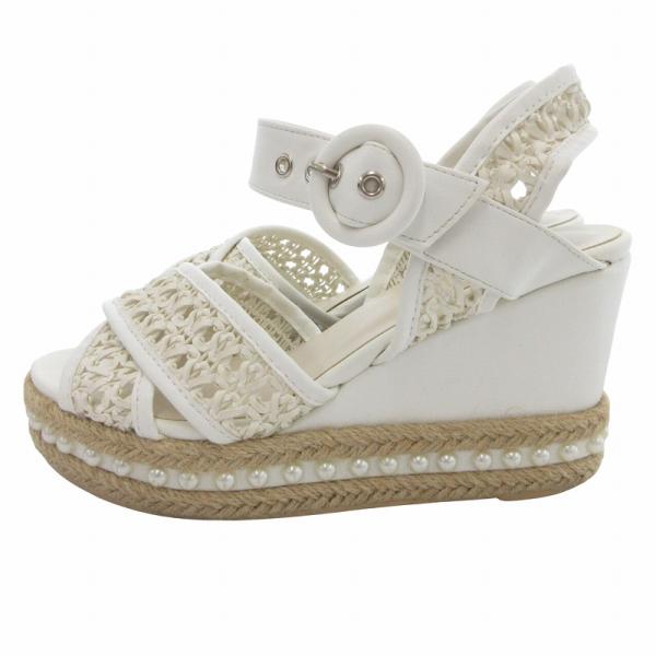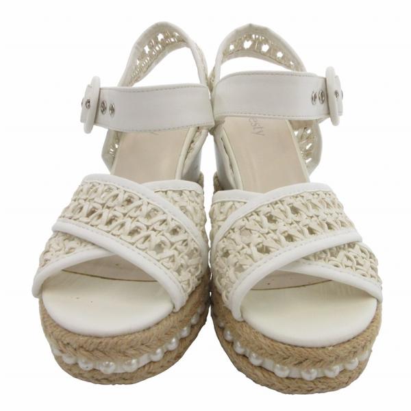 チェスティ Chesty サンダル ウェッジソール フェイクパール レザー 編み込み 白 ホワイト /JS レディース