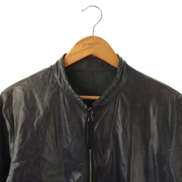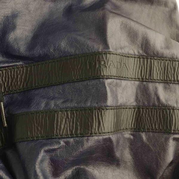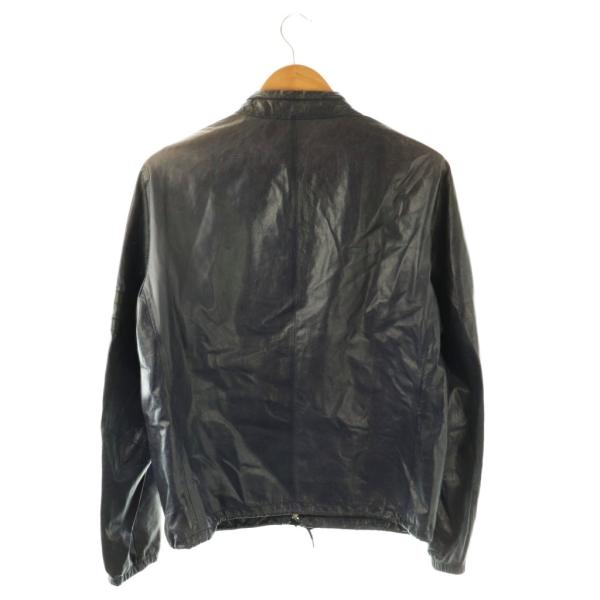 プラダ PRADA レザー ジップアップ ジャケット 革ジャン ブルゾン 50 ネイビー /CX ■OS メンズ