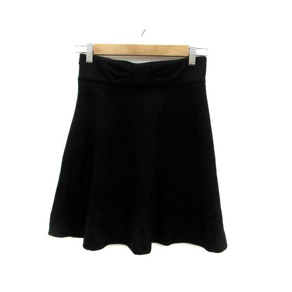 ストロベリーフィールズ STRAWBERRY-FIELDS フレアスカート ひざ丈 ウール 2 黒 ブラック /HO35 レディース