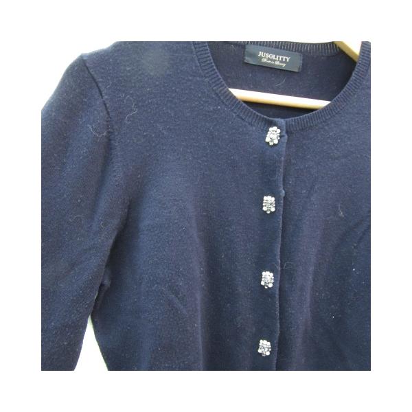 ジャスグリッティー JUSGLITTY カーディガン ショート丈 ビジュー 2 ネイビー 紺 /YM42 レディース