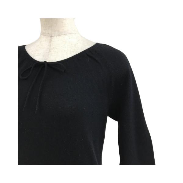 コムサコムサコムサ COMME CA COMME CA COMME CA セーター ニット プルオーバー ラウンドネック 無地 リボン ウール 五分袖 9 黒 ブラック