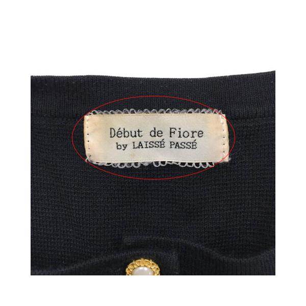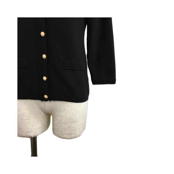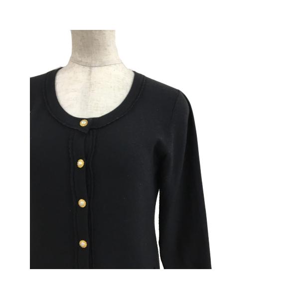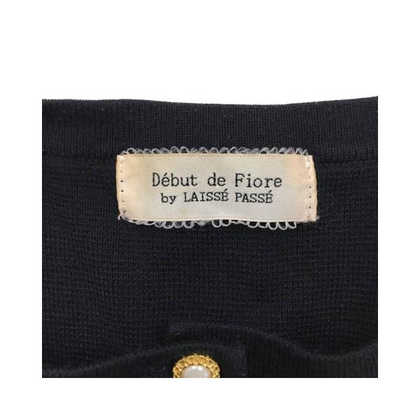 デビュー ド フィオレ Debut de Fiore カーディガン ニット ラウンドネック ビジュー 無地 七分袖 38 黒 ブラック レディース