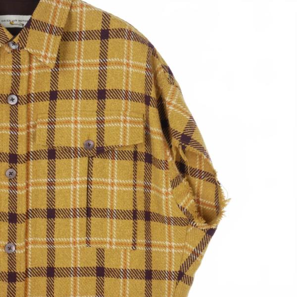 未使用品 ドリスヴァンノッテン DRIES VAN NOTEN 24AW CILLOTH SHIRTS カットオフ チェックシャツ ノースリーブ S イエロー