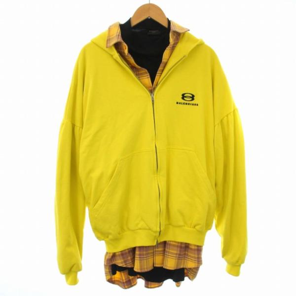 バレンシアガ Unity Sports Icon Layered Hoodie レイヤード パーカー 長袖 オーバーサイズ ジップアップ L 黄色 メンズ レディース