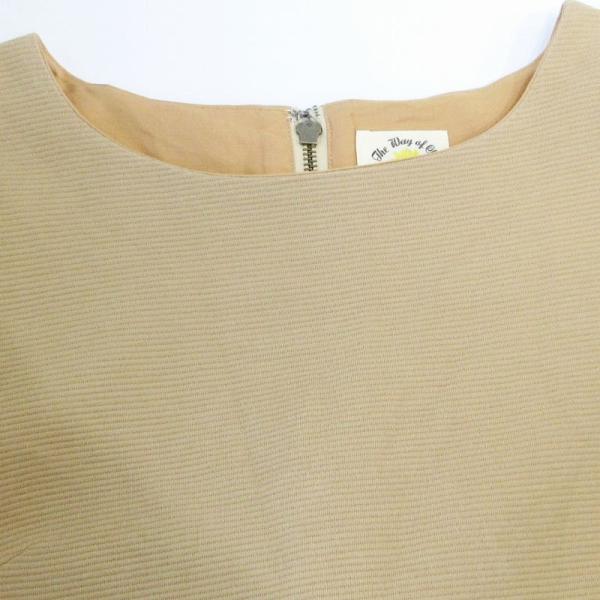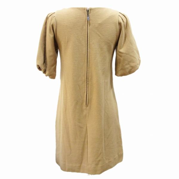 レイビームス Ray Beams 美品 リブニット ワンピース ボートネック パフスリーブ 半袖 ひざ丈 茶 ブラウン 系 ■MET1 0720 レディース