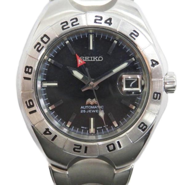 セイコー SEIKO 4S12-0020 腕時計 ウォッチ 自動巻き 黒文字盤 カレンダー付き デイト シルバー色 ■GY18 /MQ メンズ