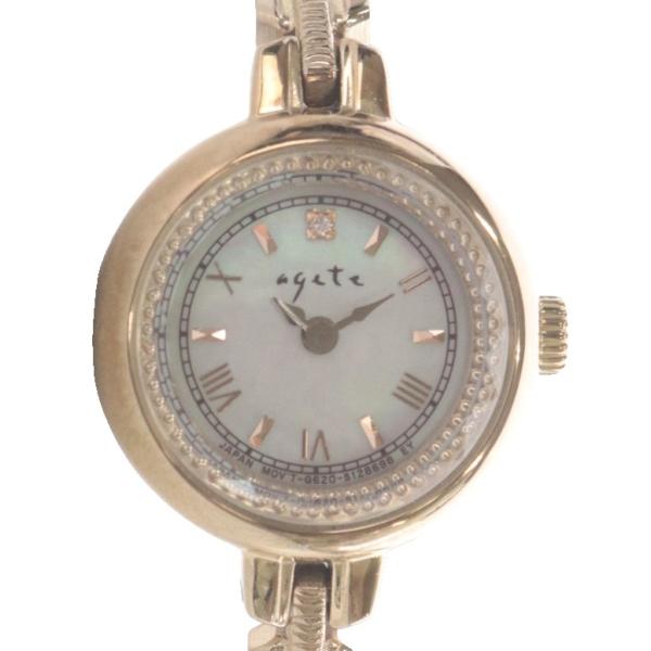 アガット agete ダイヤ1P シェル ソーラー ラウンド腕時計 ゴールド色 /SR ■SH レディース