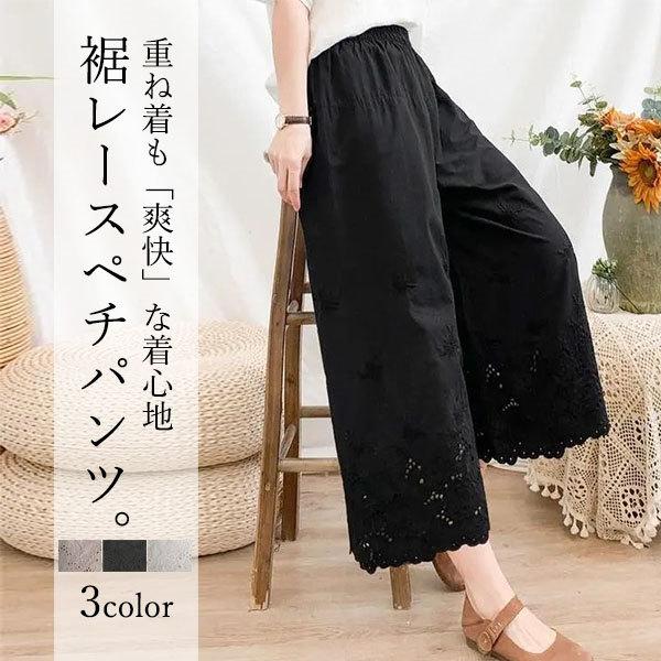ペチパンツ レディース 着痩せ 細身 綿 コットン パンツ ペチコート インナー 重ね着 ガウチョパンツ ワイドパンツ スカンツ スカーチョ きれいめ 大きいサイズ