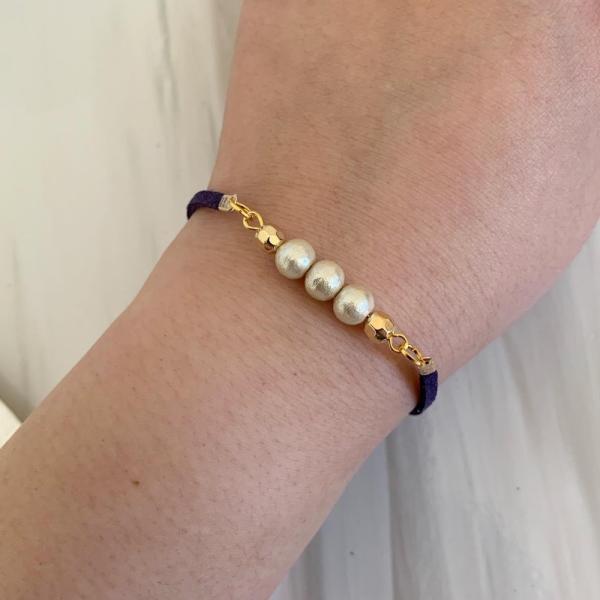 コットンパールのコード ブレスレット ハンドメイド ベロニカ 皮 スエード